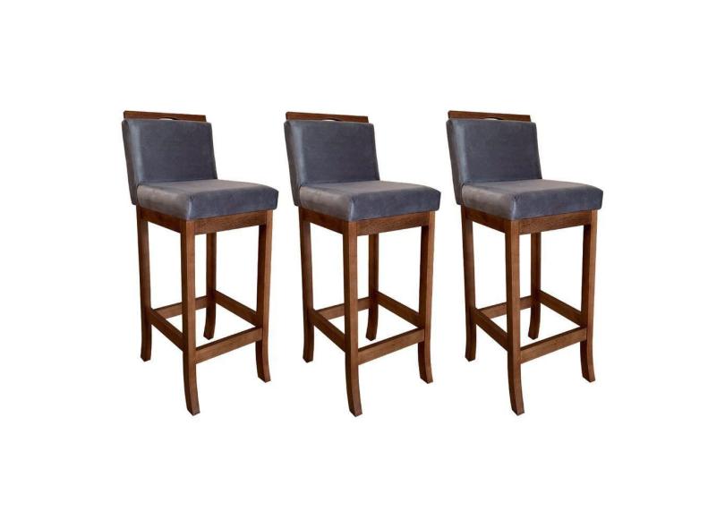Kit 3 Banquetas Alta Encosto Estofado 38x102 Cm Turim Madeira Maciça Castanho Suede CCS