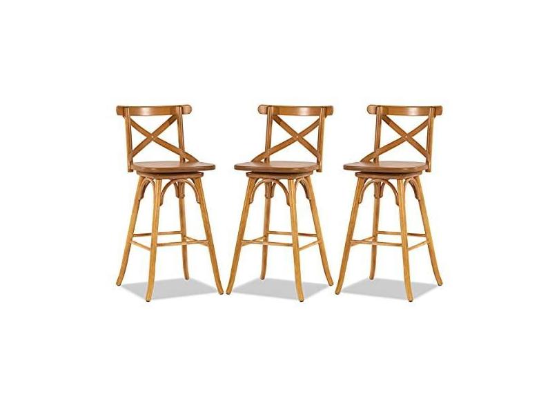 Kit 3 Banquetas Alta Espanha Giratória em Madeira Mel RMI