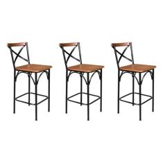 Kit 3 Banquetas Alta Industrial Paris Base Alum nio Com Encos