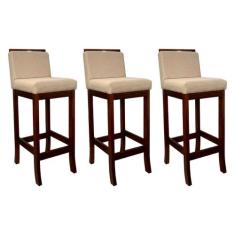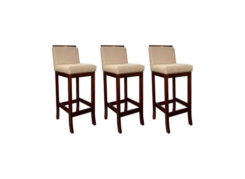 Kit 3 Banquetas Alta para Balcão Turim Madeira Castanho Linho Bege CCS