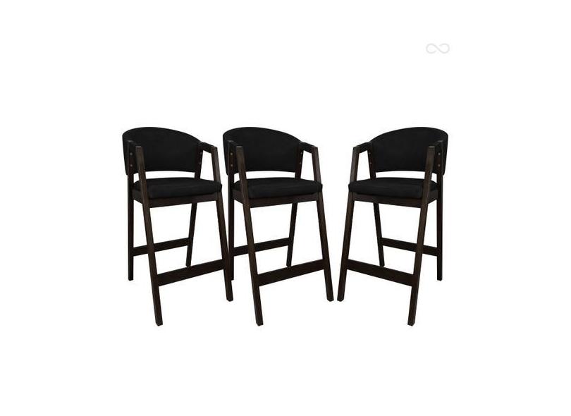 Kit 3 Banquetas Alta para Bancada de Cozinha Ravena Madeira Maciça Cap