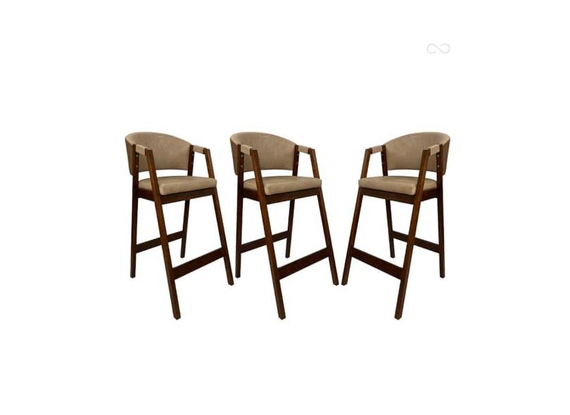 Kit 3 Banquetas Alta para Bancada de Cozinha Ravena Madeira Maciça Capuccino Sintético Marrom Bege CCS