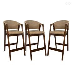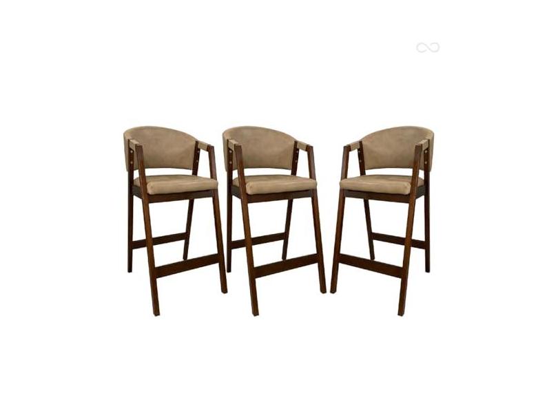 Kit 3 Banquetas Alta para Bancada de Cozinha Ravena Madeira Maciça Pinhão Sintético Bege CCS