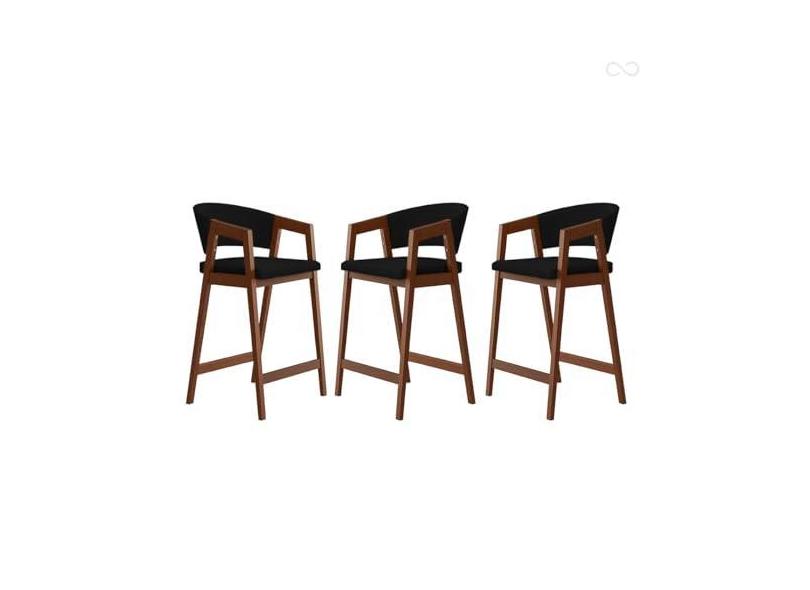 Kit 3 Banquetas Alta para Bancada de Cozinha Ravena Madeira Maciça Pinhão Suede Preto CCS