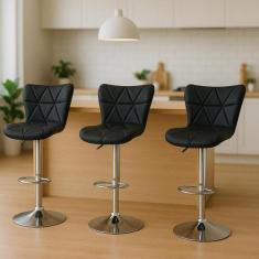 Kit 3 Banquetas Altas Com Encosto Alto Estofado Para Cozinha Americana
