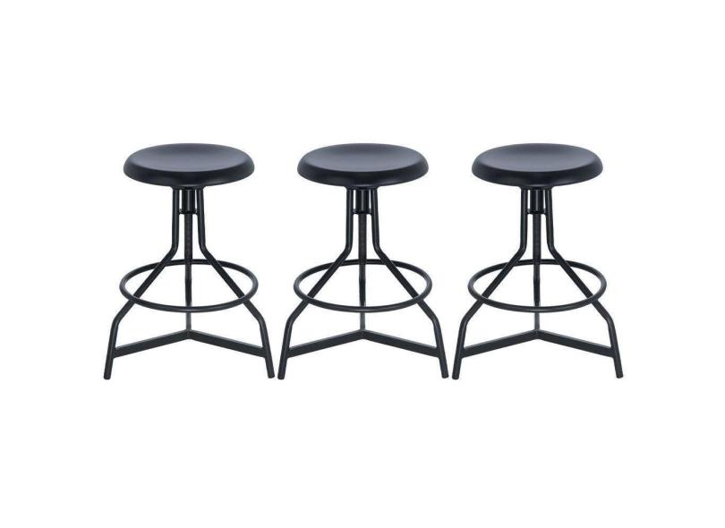Kit 3 Banquetas Altas Cozinha Industrial Loft Aço Giratória York Preto