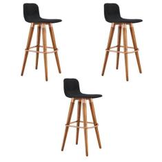 KIT 3 BANQUETAS ALTAS LUXO LINEA AÇO COBRE LINHO PRETO BASE CARVALHO