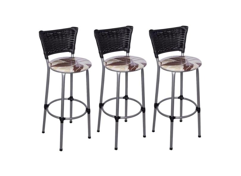 O menor preço encontrado no Brasil para Kit 3 Banquetas Altas Prata com Encosto Junco Preto Assento Floral Marrom atualmente é R$ 378,97.