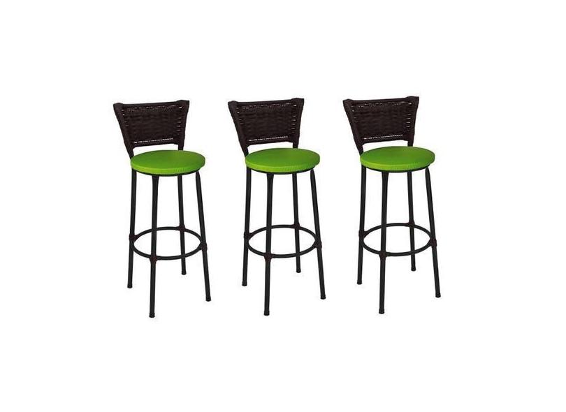 O menor preço encontrado no Brasil para Kit 3 Banquetas Altas Preta com Encosto Junco Argila Assento Verde - F atualmente é R$ 350,58.