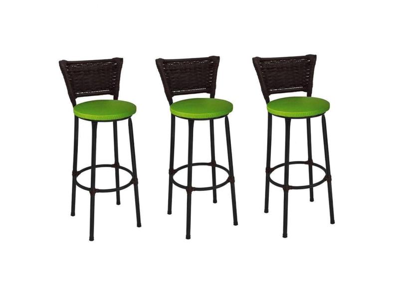 Kit 3 Banquetas Altas Preta com Encosto Junco Argila Assento Verde