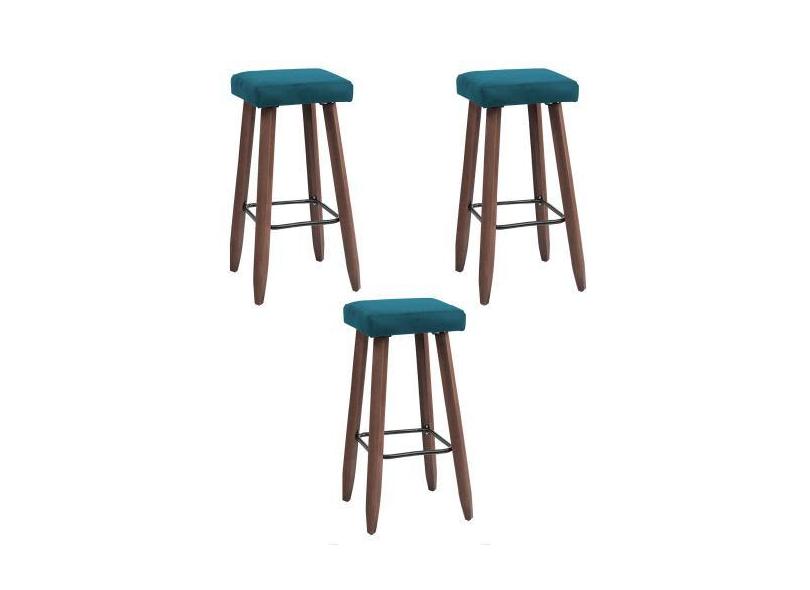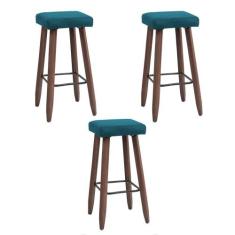 O menor preço encontrado no Brasil para Kit 3 Banquetas Altas Quadradas Pés Madeira Modelo Paris - JOTABE, azu atualmente é R$ 860,16.