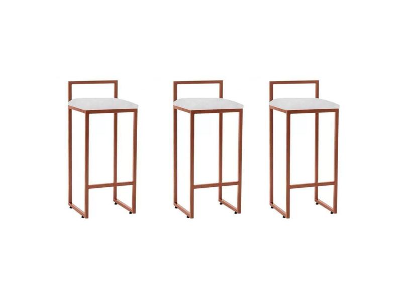 Kit 3 Banquetas Bar Cozinha Bistrô Altas Em Aço Industrial Dori Cobre Assento Suede Branco - Preto