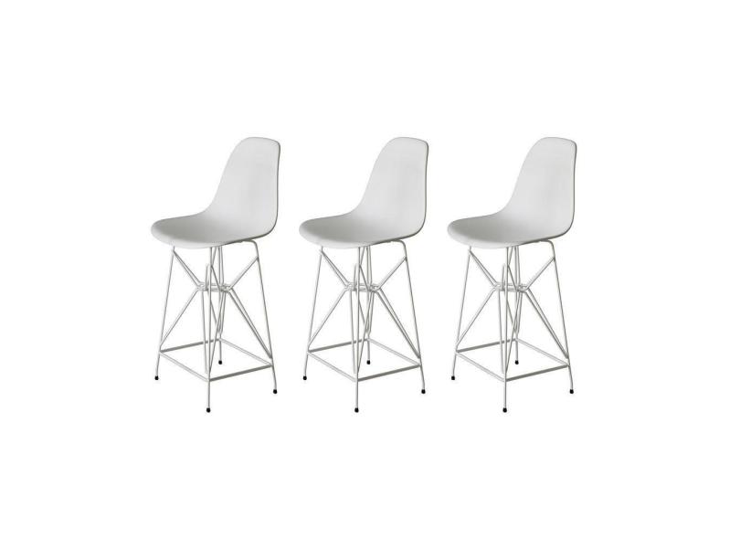 Kit 3 Banquetas Bistrô Alta Eames Branca Base Ferro Branco - Cor: Branco