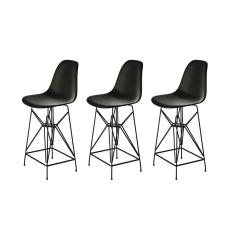 Kit 3 Banquetas Bistrô Alta Eames Preta Base Ferro Preto
