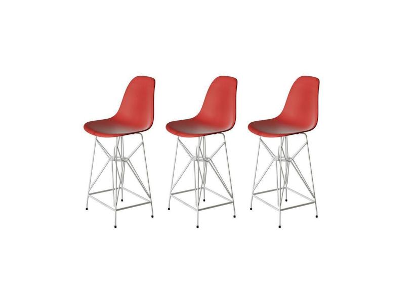 Kit 3 Banquetas Bistrô Alta Eames Vermelha Base Ferro Branco - Cor: Vermelho