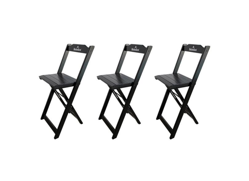 Kit 3 Banquetas Bistrô Dobrável Madeira Personalizada Hei Preta - Cor: Preto