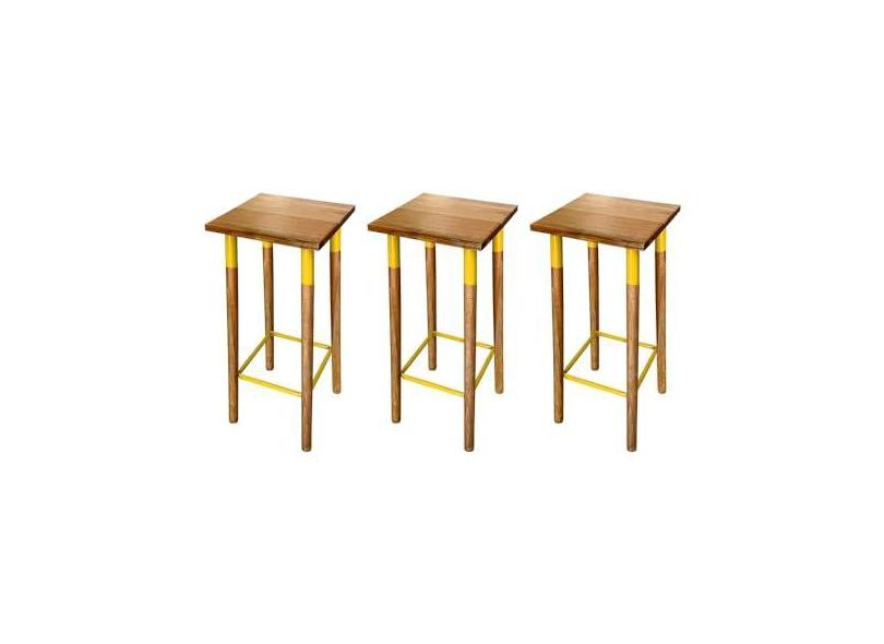 KIT 3 BANQUETAS BISTRO INDUSTRIAL COLORS FERRO E MADEIRA MACIÇA - AMARELA