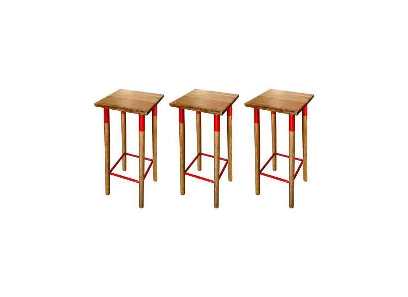 Kit 3 Banquetas Bistro Industrial Colors Ferro e Madeira Maciça - Verm