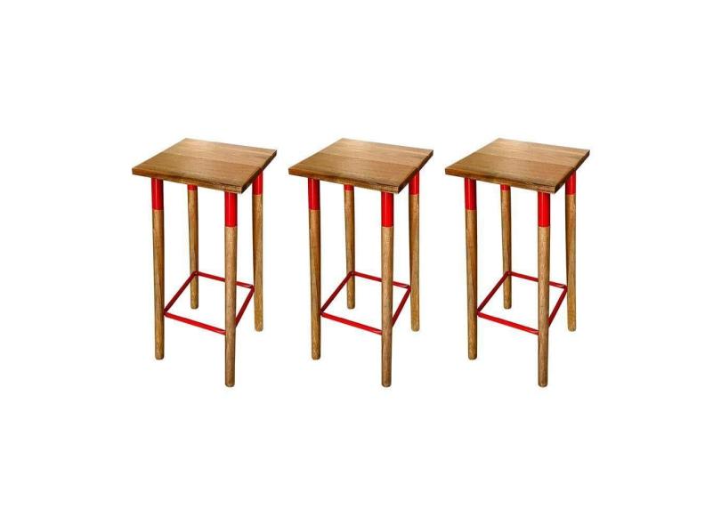 Kit 3 Banquetas Bistro Industrial Colors Ferro E Madeira Maciça - Vermelha Vermelho