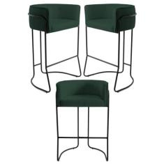Kit 3 Banquetas Decorativas Base Aço Betina B-303 Veludo Verde Musgo - Domi