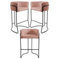 Kit 3 Banquetas Decorativas Base Aço Betina C-105 Linho Rosê - Domi