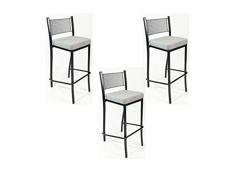 Kit 3 Banquetas EMPILHÁVEL Preta alta assento Linho - Poltronas do Sul