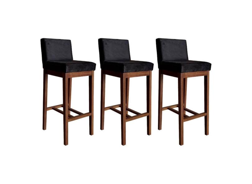 Kit 3 Banquetas Estofadas Alta Lisboa 100 Cm Madeira Maciça Suede Preto CCS