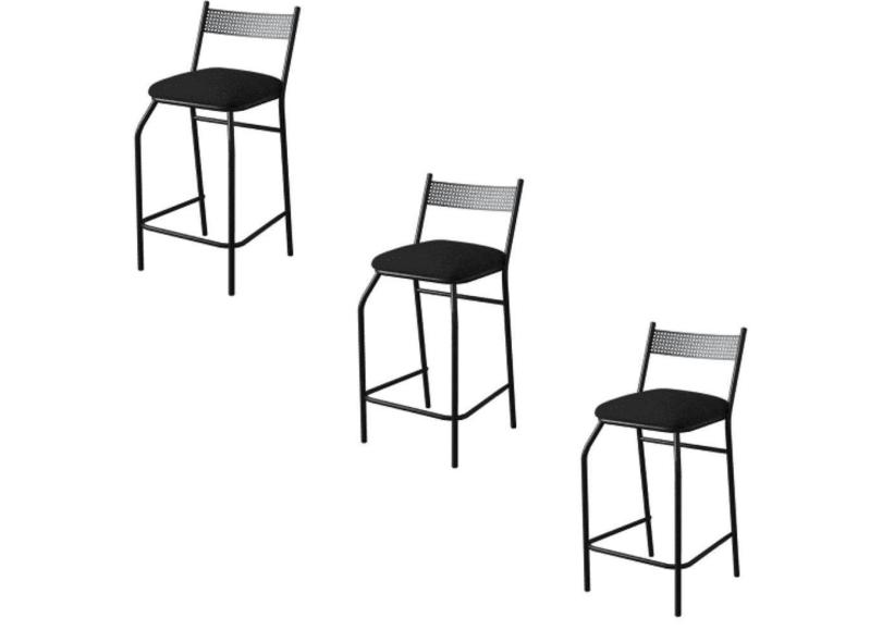 Kit 3 Banquetas Gourmet Para Bancada Ou Cozinha Ibiza Preto