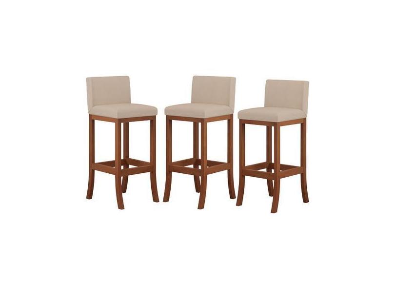 Kit 3 Banquetas Média Encosto Estofado 38x90Cm Ilha Espanha Madeira Ma