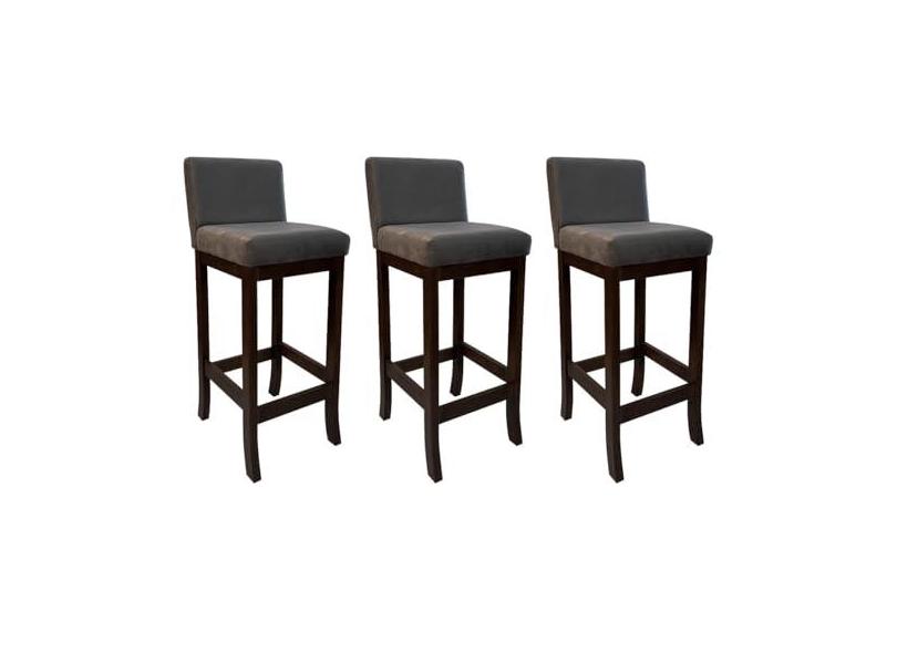 Kit 3 Banquetas Média Estofada de Madeira Capuccino Melody Suede Cinza