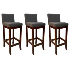 Kit 3 Banquetas Média Estofada de Madeira Castanho Melody Suede Cinza
