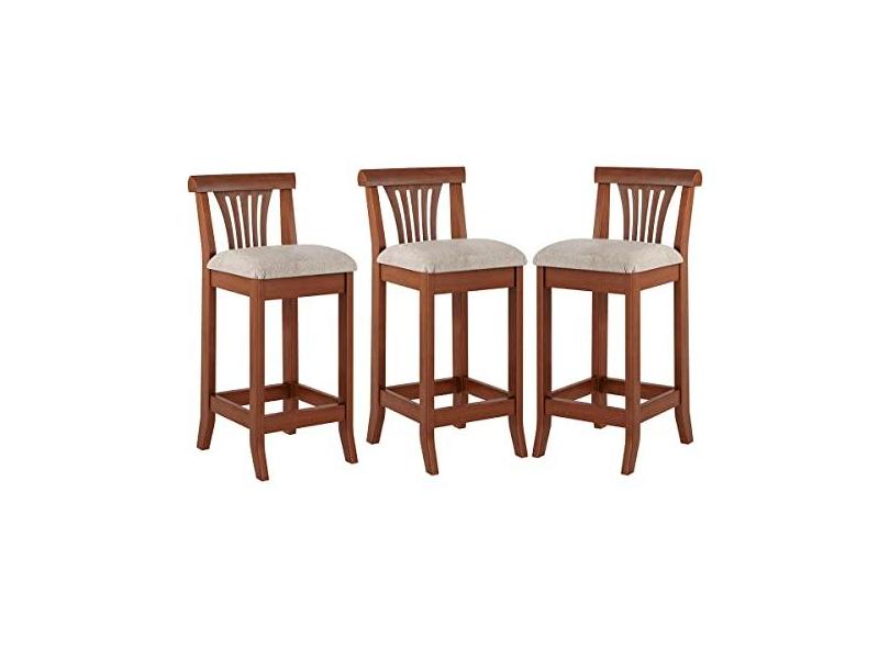 Kit 3 Banquetas Média Estofada Encosto Valentina 36x90Cm Bancada Madeira Maciça Linho Bege M58 - RMI