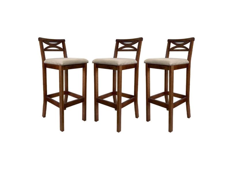 Kit 3 Banquetas Média Estofada para Bancada Madri Madeira Castanho Suede Bege CCS