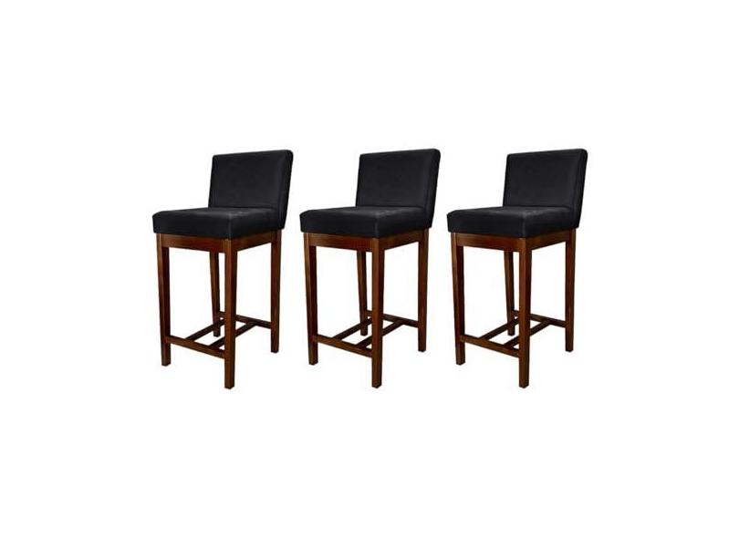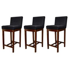 Kit 3 Banquetas Média Estofadas Lisboa Madeira Capuccino Suede Preto CCS
