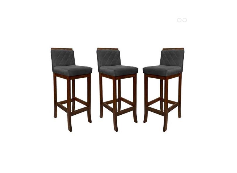Kit 3 Banquetas Média para Bancada Nice Madeira Castanho Matelassê Suede Cinza CCS
