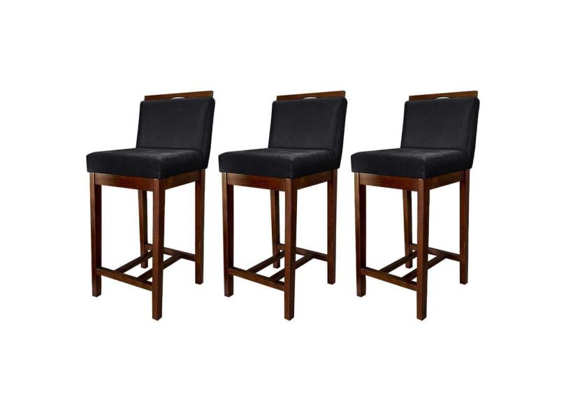 Kit 3 Banquetas Média para Cozinha Líbia Madeira Capuccino Suede CCS