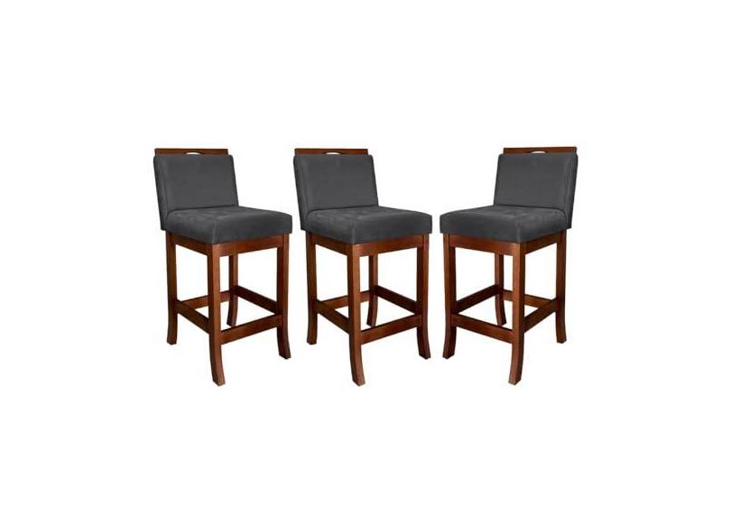 Kit 3 Banquetas Média para Cozinha Turim Madeira Castanho Suede Cinza CCS