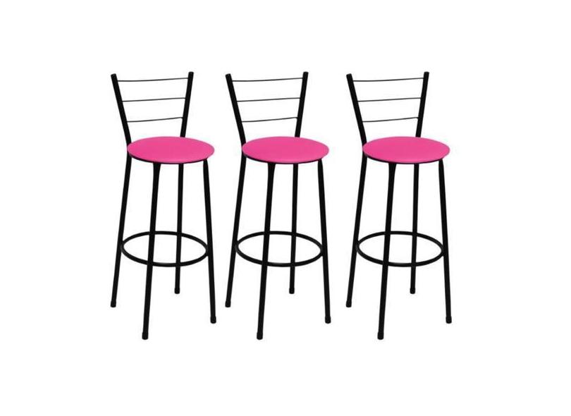 Kit 3 Banquetas Médias Preta com Encosto Assento Rosa - Fortmix