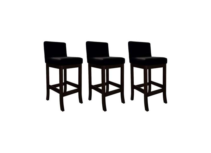 Kit 3 Banquetas para Bancada Média em Madeira Capuccino Melody Suede Preto