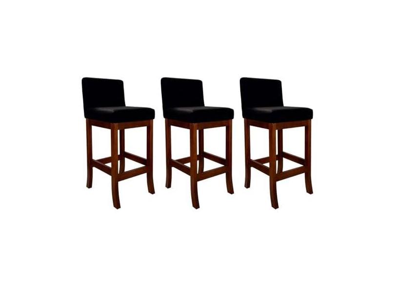 Kit 3 Banquetas para Bancada Média em Madeira Castanho Melody Suede Preto