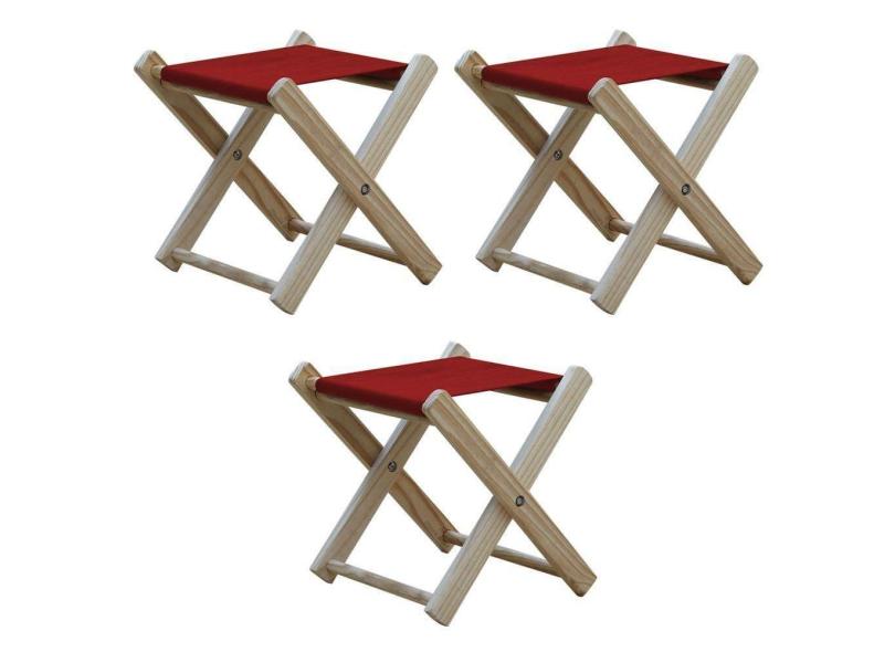 Kit 3 Banquinho De Madeira Banqueta Pescador-vermelho