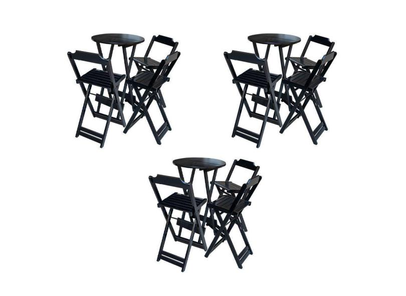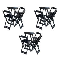 Kit 3 Conjuntos De Mesa Bistrô Dobraveis Em Madeira Padrão Com 3 Banquetas Altas - Preto - Preto