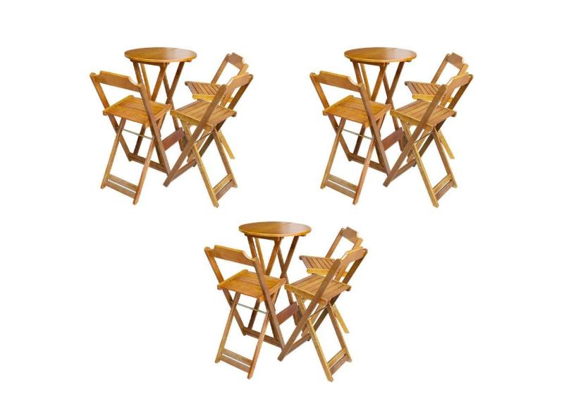 O menor preço encontrado no Brasil para Kit 3 Jogos de Mesa Bistrô de Madeira Dobrável com 3 Banquetas - Caramelo atualmente é R$ 1.381,50.