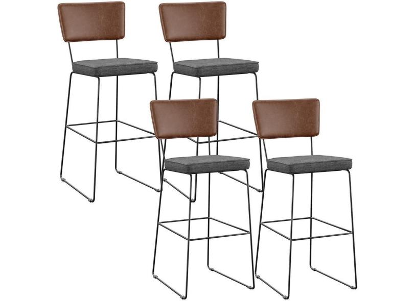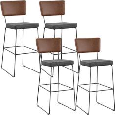 Kit 4 Banqueta Alta Cozinha Allana L02 Marrom Cinza Escuro