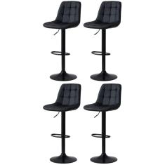 Kit 4 Banqueta Alta Elegance Estofada Com Base Giratória E Regulagem De Altura - Preto