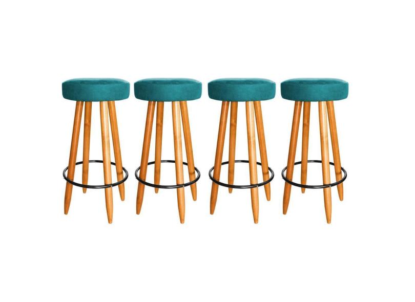 Kit 4 Banqueta Alta Madeira Industrial Cozinha Turquesa