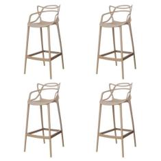 Kit 4 Banquetas Allegra Nude Polipropileno Cozinha Bistrô Bancada