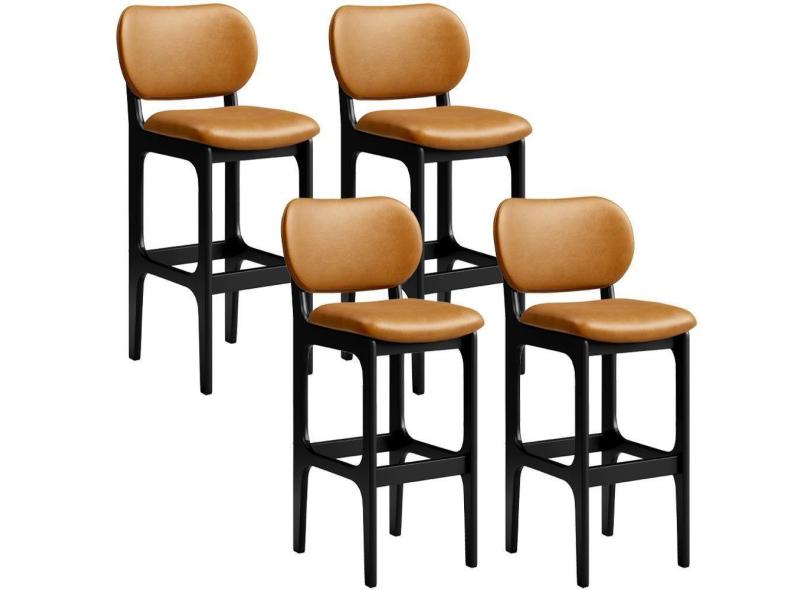 Kit 4 Banquetas Alta Bar Cozinha Betta L02 Preto Whisky