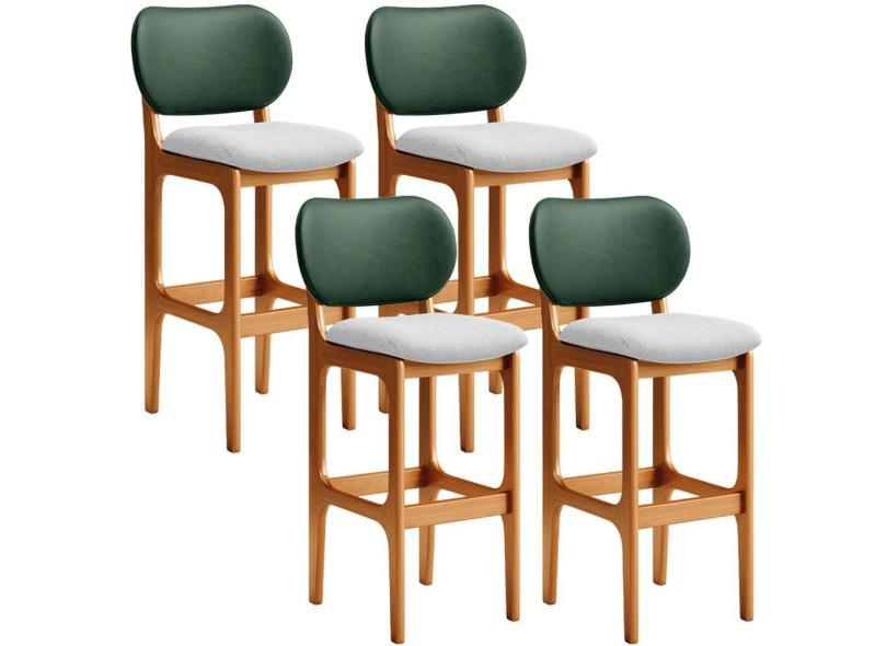 Kit 4 Banquetas Alta Bar Cozinha Sala Jantar Betta L02 Imbuia Facto Verde Linho Cinza - Lyam Decor