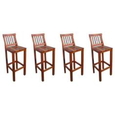 Kit 4 Banquetas Alta com Encosto Conforto Madeira Maciça de Demolição